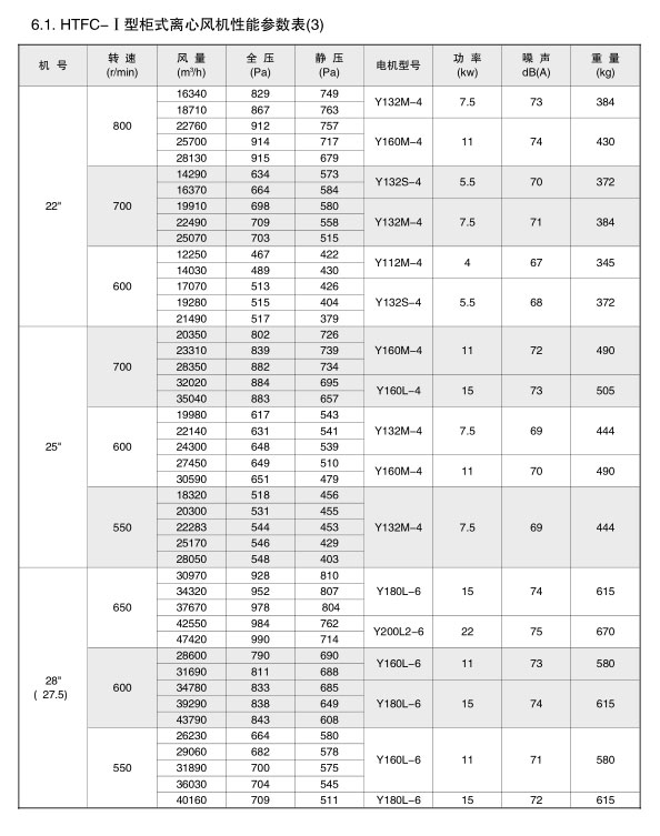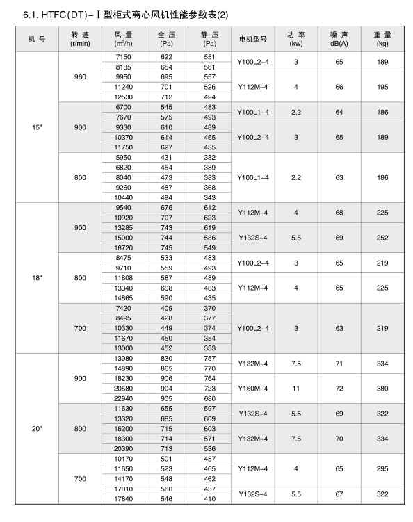 HTFC(DT)系列消防通風(兩用)低噪聲式離心風機分為I型、II型。I型為單速,II型為雙速。該系列風機有較多的性能參數,以滿足不同用戶的需要。